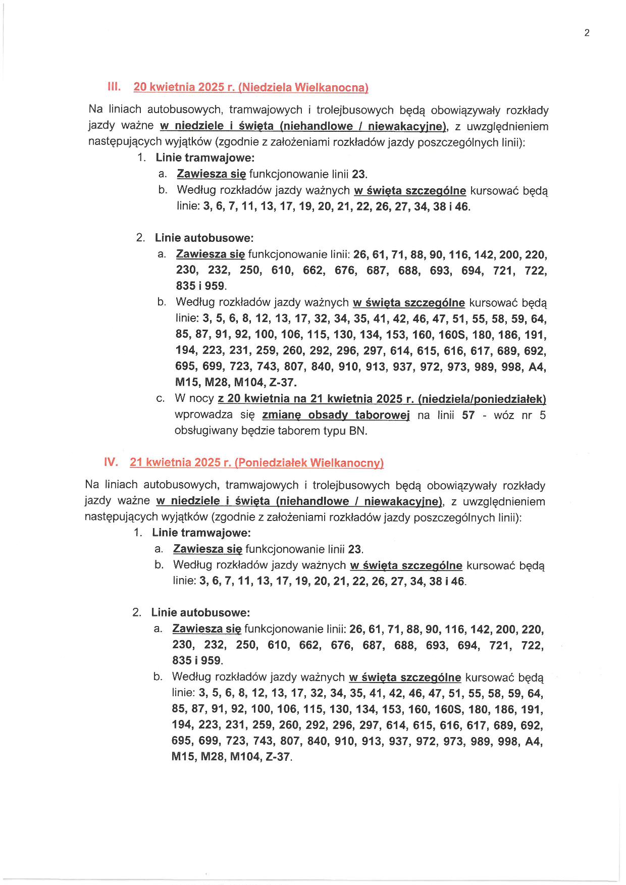 - 20 i 21 kwietnia będą obowiązywały rozkłady jazdy ważne w niedziele i święta (niehandlowe/niewakacyjne/