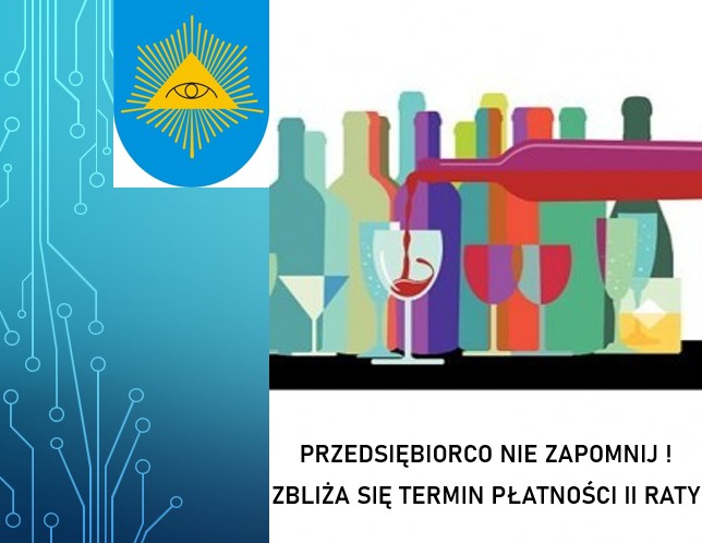 - Uprzejmie przypominamy, że zgodnie z art. 11¹ ust. 7 ustawy o wychowaniu w trzeźwości i przeciwdziałaniu alkoholizmowi z dniem 30 maja 2025 roku upływa termin uiszczenia II raty opłaty za korzystanie z zezwoleń na sprzedaż i podawanie napojów alkoholowych.