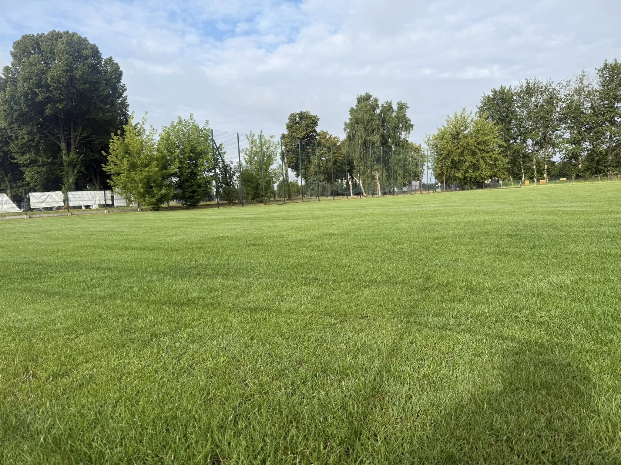 Murawa jak nowa – efekty piaskowania boiska w Chełmie Śląskim już widoczne.