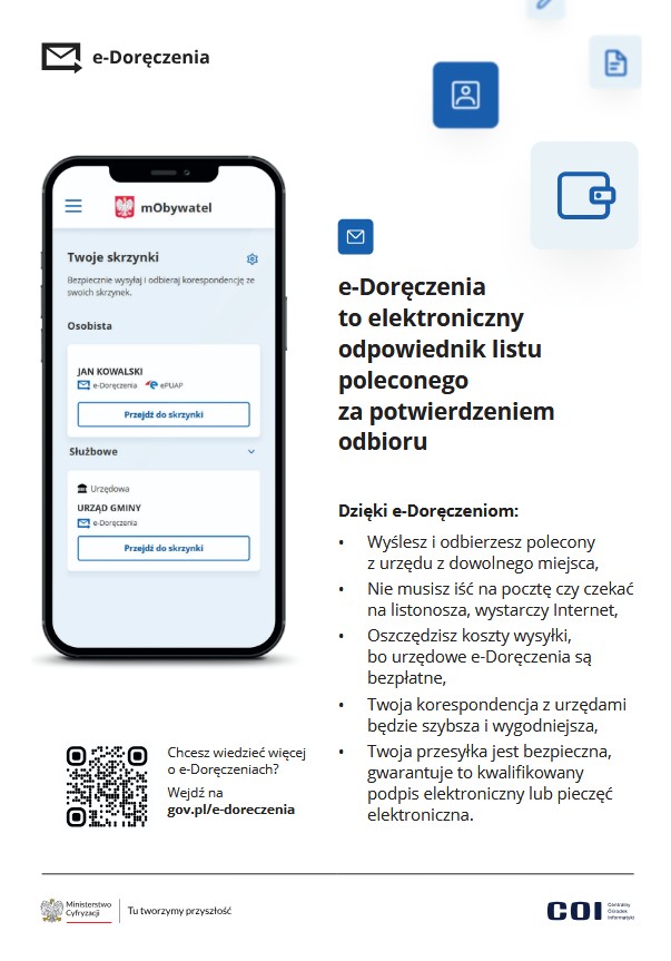Poniżej zamieszczamy ulotkę dotyczącą e-doręczeń.